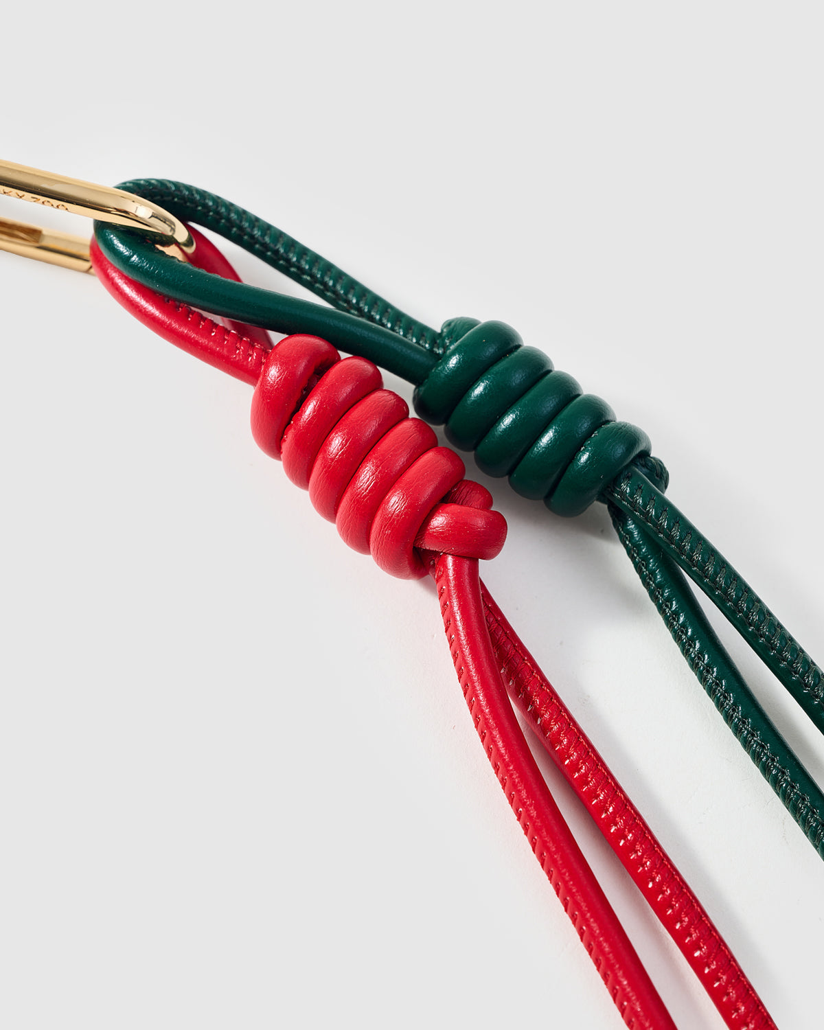 | Materials | French Alran leather charm, crystal strawberry pendant, red & green leather cords, gold-plated hardware |