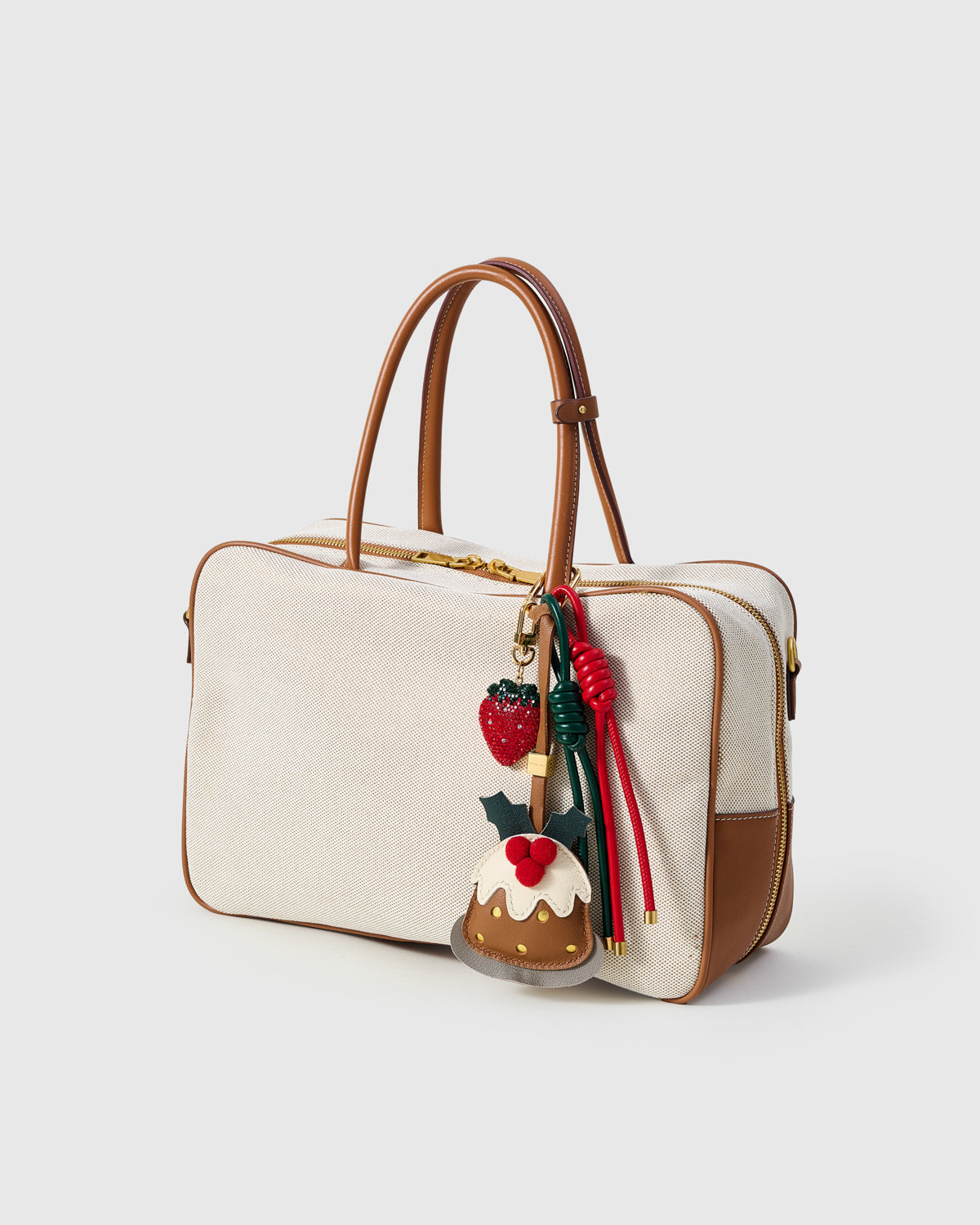Christmas Pudding — a symbol of joy, family, and festive sweetness. With its soft brown leather body, creamy “icing” top, and gold-studded detail, it’s a miniature celebration of holiday indulgence.